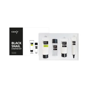 com Stosuj zgodnie z instrukcją. Przechowuj w suchym miejscu, poza zasięgiem dzieci. Nie połykać. W razie reakcji alergicznej przerwij używanie i skonsultuj się z lekarzem. COXIR Black Snail Starter Kit to czterostopniowy zestaw pielęgnacyjny, który zapewnia kompleksową regenerację i odżywienie skóry.
