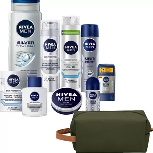 NIVEA MEN Silver Protect Zestaw dla mężczyzn do twarzy i ciała + kosmetyczka PIANKA DO GOLENIA SILVER PROTECT 200 ml SILVER PROTECT ŻEL POD PRYSZNIC 500 ml SILVER PROTECT ANTYPERSPIRANT ROLL ON 50 ml WODA PO GOLENIU SILVER PROTECT 100 ml ŻEL DO GOLENIA SILVER PROTECT 200 ml SILVER PROTECT ANTYPERSPIRANT 150 ml SILVER PROTECT ANTYPERSPIRANT SZTYFT 50 ml NIVEA KREM 150 ml KORZYŚCI SKÓRA Z ZAROSTEM PIELĘGNACYJNY SZYBKIE WCHŁANIANIE WYCIĄG Z RUMIANKU JONY SREBRA PROWITAMINA B WSZYSTKIE TYPY SKÓRY NIVEA Men Silver Protect odświeżająca formuła z jonami srebra, która, jak naukowo udowodniono, powstrzymuje rozwój bakterii i dzięki temu pozwala Ci zatrzymać uczucie świeżości na dłużej. Lekka konsystencja orzeźwia Twoją skórę i pobudza do działania. To kosmetyk przygotowany specjalnie z myślą o mężczyznach - zapewnia kompleksową pielęgnację i działa na jak prawdziwy zastrzyk energii. Ta antybakteryjna formuła daje Ci poczucie czystości i świeżości na cały dzień.