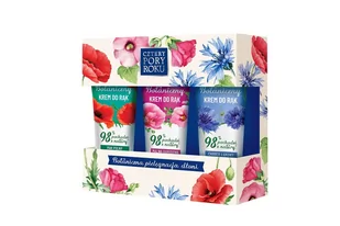 Zestaw 3 elementowy Cztery Pory Roku Botaniczna pielęgnacja dłoni w składzie: Krem botaniczny malwa 100 ml Krem botaniczny mak 100 ml Krem botaniczny chaber 100 ml