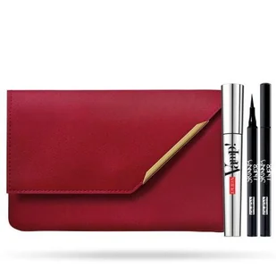 Zestaw kosmetyków do makijażu oczu – Pupa Vamp! Mascara & Skinnyliner Zestaw kosmetyków Pupa Vamp! Mascara & Skinnyliner zawiera intensywnie czarny tusz do rzęs oraz precyzyjnym eyelinerem. Zestaw kosmetyków Pupa Vamp! Mascara & Skinnyliner jest odpowiedni dla wrażliwych oczu i kobiet, które noszą soczewki kontaktowe. W zestawie z elegancką kopertówką! Pupa Vamp! Tusz do rzęs 100 – Extra Black, 9ml Tusz do rzęs zwiększający objętość jest rewolucyjny pod względem wydajności i formuły. Uzyskaj gęste, pełne rzęsy o wyglądzie sztucznych rzęs, bez konieczności ich noszenia. Jest regulowany: