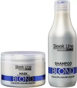 Marzysz o platynowym odcieniu włosów? Jesteś blondynką, masz siwe włosy lub rozjaśniane? Pragniesz zadbać o ich kondycję i piękny wygląd? Wybierz zestaw do włosów blond szampon i odżywkę neutralizujące żółte odcienie Stapiz Professional Sleek Line Blond 300+200 ml z jedwabiem i koenzymem Q10! Pełny opis produktów: szampon neutralizujący Stapiz Sleek Line Blond 300 ml maska neutralizująca Stapiz Sleek Line Blond 250 ml Cechy zestawu szampon + maska neutralizująca Stapiz Blond: zapewnia włosom platynowy odcień eliminuje żółte odcienie regeneruje zawiera proteiny jedwabiu koenzym Q10 witaminy A i E ceramid NG do włosów blond, siwych i rozjaśnianych