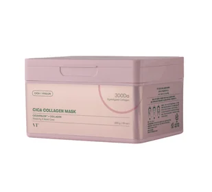 Zestaw masek w płachcie do zadań specjalnych Maseczki do twarzy w ekonomicznym opakowaniu zawierającym 30 sztuk maseczek nasączonych m. in kolagenem, niacynamidem i pantenolem. Posiada działanie ujędrniające, poprawiające elastyczność, nawilżające oraz wygładzające. Zawarty w esekcji maseczki pantenol posiada dodatkowo działanie łagodzące na podrażnioną skórę. VT Cosmetics Cica Collagen Mask mają za zadanie nawilżyć, ujędrnić i ukoić skórę.