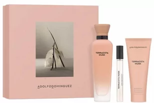 Piżmo terakotowe nadaje intensywny, aksamitny, ale nie słodki zapach. Zestaw Adolfo Dominguez to idealna opcja na prezent, wykonana wyłącznie z naturalnych składników. Zestaw zawiera: Terracotta Musk Eau de Parfum o pojemności 120 ml i 10 ml. Przywołuje skojarzenie z jedwabiem, który otula skórę i zdaje się w niej rozpuszczać.