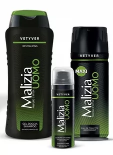 Malizia Zestaw na prezent dla mężczyzn Uomo Vetyver Malizia Vetyver intryguje, przyciąga i zniewala. To ponadczasowy zapach dla prawdziwych mężczyzn. Wzbogacona naturalnym wyciągiem z sudańskiej trawy Vetiveria - zapewnia długotrwałe uczucie świeżości oraz niezwykłą trwałość zapachu. Malizia Vetyver to pełna gama kosmetyków do pielęgnacji dla nowoczesnych i aktywnych mężczyzn. Zestaw składa się z 3 elementów: