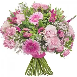 Bukiet dla Niej to kwiatowe arcydzieło, które emanuje delikatnością, elegancją i radością. Wszystkie kwiaty w kompozycji są w kolorze różowym, który podoba się wielu dziewczynom i kobietom. Podaruj Bukiet dla Niej komuś wyjątkowemu, by wyra . . .