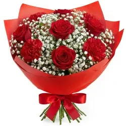 Bukiet „Skryty Szept” to kompozycja, w której klasyka spotyka się z głębokim uczuciem. Mimo dyskretnej nazwy, ten bukiet krzyczy o miłości! Szlachetne, czerwone róże w połączeniu z eleganckimi, pełnymi goździkami w tym samym odcieniu, tworz . . .