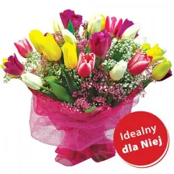 Tęcza z tulipanów, a na jej końcu coś cenniejszego niż garniec ze złotem - serce ukochanej osoby. Poczta Kwiatowa® - poczuj się jak w baśni. Bukiet kwiatów Tulipanowa Tęcza to kompozycja składająca się 25 kolorowych tulipanów, które przyozd . . .
