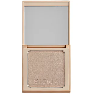 HIGHLIGHTER marki Sigma. Rozświetlacz do twarzy. Jest w 100% wegański. Posiada prasowaną formułę, wypełnioną po brzegi rozświetlającymi, perłowymi pigmentami. Doskonale sprawdzi się jako tradycyjny rozświetlacz, cień do powiek, pod łuk brwiowy, na łuk kupidyna czy też nos.