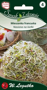 Regularne spożywanie kiełków wyprodukowanych z mieszanki francuskiej: -korzystnie wpływa na odpornośc organizmu-wzmacnia mięsnie, skórę, włosy, zęby i paznokcie-wspomaga przemianę materii Mieszanka francuska (5g) zawiera nasiona: -lucerna-koniczyny-kopru-kozieradki-rzodkiewki-szczypiorku SPOSÓB PRODUKCJI KIEŁKÓW 1. Ułóż naczynie na równej powierzchni i osadź na nim sitko, zamykająć pudełko. 2. W zamknięte naczynie wlej taką ilość wody, aby jej lustro znajdowłlo się powyżej siatki.