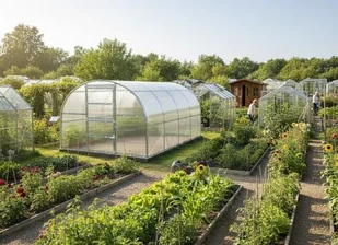 Łukowa stalowa szklarnia, szer 3 x gł 6 m, profile ocynkowane, poliwęglan o grubości 4 mm z Wielkiej Brytanii, pow 18 m2.