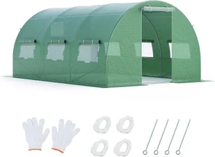 Szklarnia COSTWAY 12m² 4x3x2m, szklarnia foliowa z metalową ramą, 6 zwijanych okien siatkowych i 2 drzwi na zamek błyskawiczny, szklarnia zielona