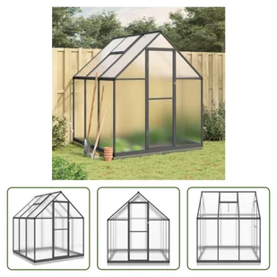 Szklarnia z ramą fundamentową antracyt 169x169x202 cm aluminiumTa szklarnia może pomieścić znaczną liczbę roślin i jest idealnym rozwiązaniem do ochrony roślin przed zimnem. Odporna na warunki pogodowe i wytrzymała rama: Rama szklarni wykonana jest z aluminium odpornego na rdzę i warunki atmosferyczne, zapewniając wysoką odporność na wiatr i stabilność. Odporne na promieniowanie UV i trwałe panele: Konstrukcja wykonana jest z odpornych na promieniowanie UV paneli poliwęglanowych, które są lekkie, trwałe i łatwe w utrzymaniu, a także mogą wytrzymać wiatr i śnieg.