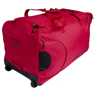 Torba hokejowa na kółkach - Senior • Pojemność: 200 l • Kolor: czerwony • Materiał: 600D Polyester • Sposób mocowania: 2 paski • Długi pasek do noszenia: Nie • Etykieta identyfikacyjna: Nie • Wentylacja: Tak