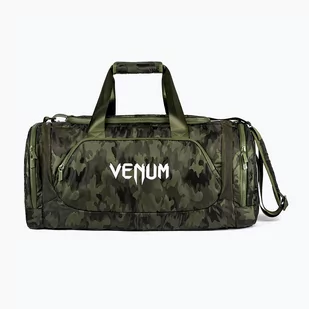 Venum Torba Treningowa Sportowa Trainer Lite Sports Bag Khaki/Camo Trzymaj cały swój sprzęt w jednej torbie dzięki torbie sportowej Venum Trainer Lite. Ten klasyczny model posiada oddzielne, wentylowane przegródki do przechowywania odzieży i sprzętu treningowego. Liczne kieszenie boczne, środkowe i górne zapewniają mnóstwo możliwości przechowywania. Dzięki różnym paskom można ją nosić w dłoni, na plecach, a nawet na ramieniu. Częściowo wykonana z siateczki w górnej części, ułatwi wentylację sprzętu po treningu szkolenie.
