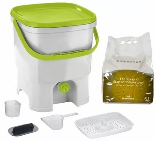 Wiaderko do kompostowania z akcesoriami oraz starterem kompostowym Bokashi. Technologia oparta o Efektywne Mikroorganizmy powoduje, że cały proces kompostowania jest praktycznie bezzapachowy, dlatego idealnie nadaje się do warunków domowych