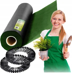 Agrowłóknina ogrodowa 1,6 m x 50 m 90 g/m2 + 100 szpilek Plonos - czarno-zielona