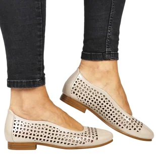 Baleriny Ażurowe Płaskie Eleganckie Potocki 12612 Beżowe