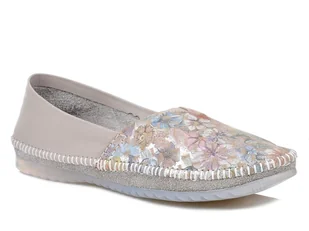 Baleriny damskie Maciejka 1930 skórzane wygodne wsuwane popielate kwiaty-40 - MACIEJKA
