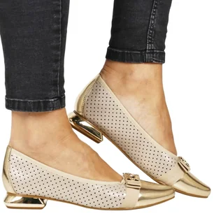Baleriny Na Płaskiej Podeszwie Ażurowe Nosek W Szpic Potocki 12556 Beżowe Złote