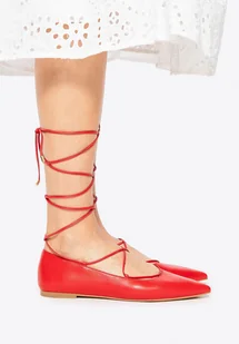 Baleriny z charakterem – lekkość formy, siła detalu Elegancja i kobiecość spotykają się tu w idealnej równowadze. Te baleriny ze skóry naturalnej wyróżniają się subtelnym, ale zdecydowanym designem. Smukły, szpiczasty nosek dodaje sylwetce lekkości i optycznie wydłuża stopę, a paski do wiązania i przeplatania wokół kostki wprowadzają nutę zmysłowości oraz indywidualnego stylu. Skórzana wyściółka i wkładka zapewniają przyjemny komfort noszenia, natomiast gumowa podeszwa dba o elastyczność i stabilność na każdym kroku. Dla kogo? Jeśli szukasz but&o