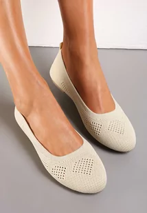 Beżowe Ażurowe Balerinki z Okrągłym Noskiem Siotte