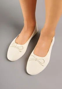 Beżowe Balerinki Materiałowe z Kokardką Melkio
