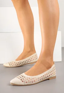 Beżowe Plecione Balerinki z Ażurowymi Wycięciami Jene