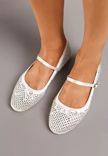 Białe Balerinki z Ażurową Cholewką i Paskiem na Klamrę Moraisa
