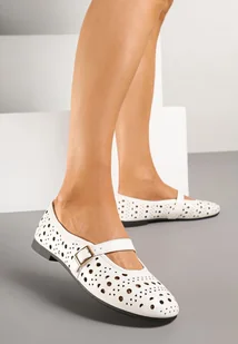 Białe Balerinki z Ażurowymi Wycięciami z Paskiem na Sprzączkę Frollia