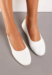 Białe Balerinki z Okrągłym Noskiem i Materiałową Cholewką Mililena
