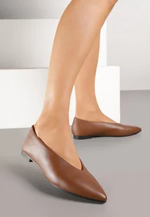 Brązowe Balerinki Vices z Wkładką ze Skóry Naturalnej w Klasycznym Stylu Nalivee