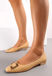 Brązowe Balerinki z Metalową Ozdobą na Płaskim Obcasie Nibraca