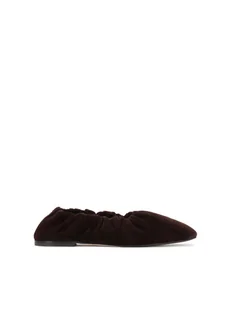 Brązowe zamszowe baleriny z elastyczną gumką i srebrnym monogramem