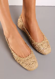 Ciemnobeżowe Balerinki na Płaskiej Podeszwie z Ażurowym Wzorem z Plecionki Erolani