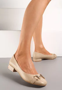 Ciemnobeżowe Balerinki na Płaskim Słupku z Klamerką z Cyrkoniami Olnas