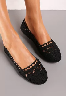 Czarne Ażurowe Balerinki z Koronką Ziel