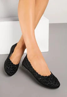 Czarne Ażurowe Balerinki Vices z Haftem w Kwiaty Efasania