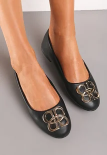 Czarne Balerinki Klasyczne Wsuwane ze Złotą Ozdobą z Metalu Tarins