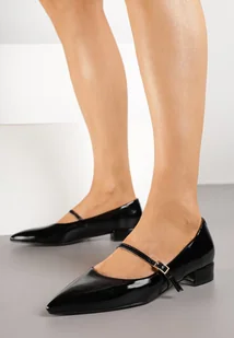 Czarne Lakierowane Balerinki Vices ze Skórzaną Wkładką i Paskiem Timaelle