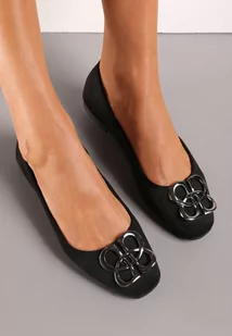 Czarne Balerinki z Imitacji Zamszu Ozdobione Klamrą Hallea