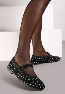 Czarne Balerinki z Imitacji Zamszu z Paseczkiem i Klamerką Zdobione Cyrkoniami Daibelle