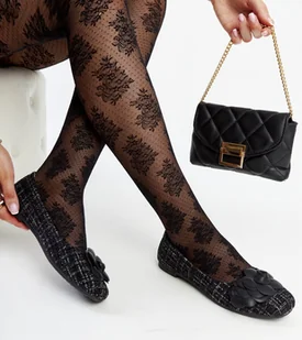 Czarne balerinki z ozdobnym kwiatkiem Mateja -40