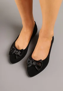 Czarne Balerinki ze Skórzaną Wkładką z Kokardą Galethia