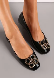 Czarne Lakierowane Balerinki z Geometryczną Klamerką Korbisa