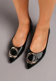 Czarne Płaskie Balerinki Zdobione Aplikacją z Cyrkoniami Esepia