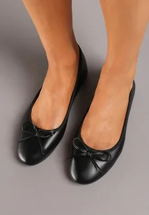 Czarne Płaskie Klasyczne Balerinki z Kokardą Rivashira