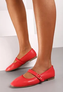 Czerwone Balerinki Zapinane na Sprzączkę ze Ściętym Noskiem Rilaisa
