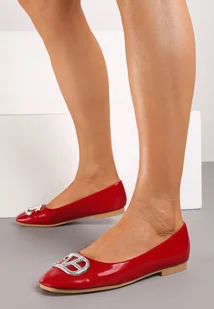 Czerwone Płaskie Lakierowane Balerinki z Cyrkoniową Ozdobą Evelinira