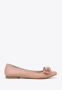 Damskie baleriny z ekozamszu z kokardą zgaszony róż 38