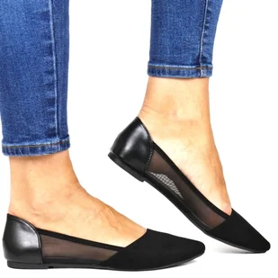 Damskie Baleriny Z Siatką Płaskie W Szpic Evento 2015 Czarne Zamszowe